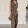 Simple Sleeveless Suit Vest Casual Wide Leg Pants Two-piece Set for Women Elegant Suit Set