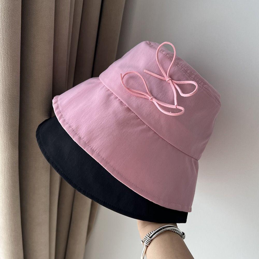 Solid Color Bow Bucket Hat Sunscreen Canvas Basin Hat Travel Bowknot Fisherman Hat Famale