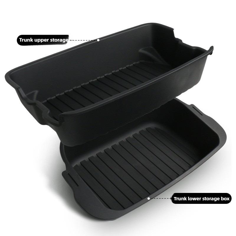 For New Tesla Model Y Juniper 2025 Launch Organizer Box Rear Trunk Double-deck Storage Box Front Cargo Dustproof Luggage Tray