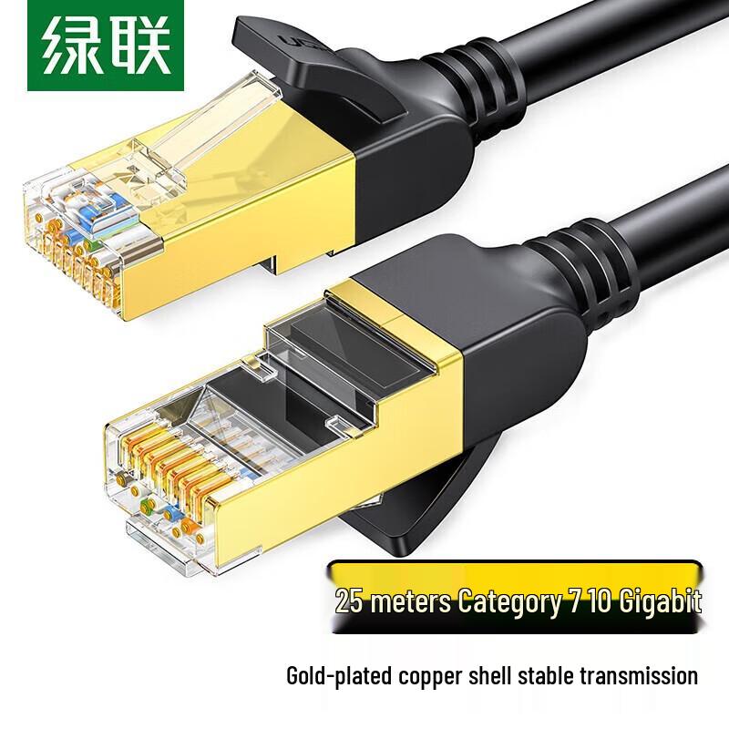 UGREEN Cat7 shielded Ethernet cable, made with pure copper 8-core twisted pair, designed for 10 Gigabit network connections. Ideal as a finished patch cable for computers and home use.