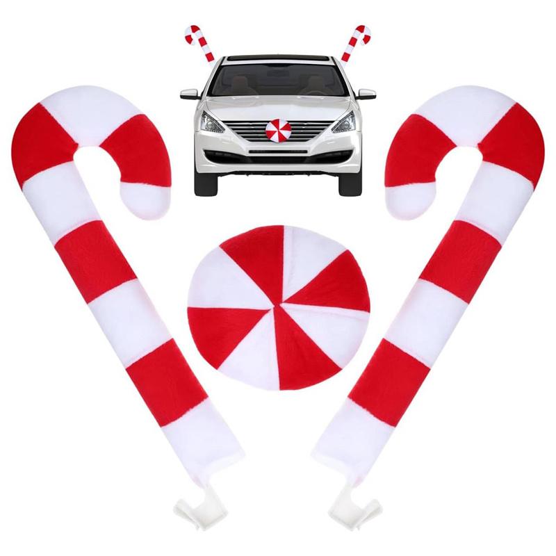 Christmas Car Accessories Reindeer Antlers Nose Set Candy Cane Design Easy Install Durable Fabric Car Decoration For Xmas