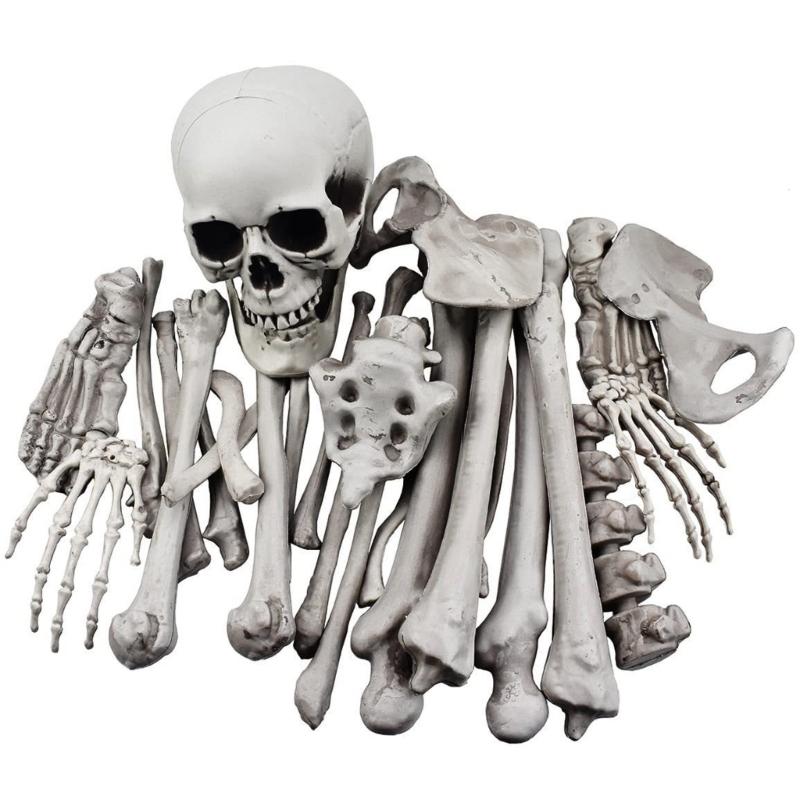 28 Pack Skeleton Bone and Skull Halloween Skeleton Bone Figurine for Halloween Spooky Graveyard Ground Decoration