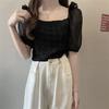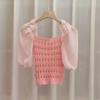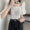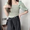 Moda Bükümlü Kare Yaka Kısa Kollu Örme Gömlek Kadın Yaz Tasarım Anlayışı Niş Kısa Kesim Şık Üstler Günlük Temel Slim Fit Kazaklar Tişörtler