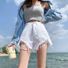 Genç Skinny Moda ve Çok Yönlü Denim Şort Kadın Bol Yazlık İnce Kesim Büyük Beden Yüksek Bel İnce A Kesim Geniş Paça Yırtık Pantolon