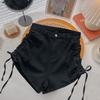 Modaya Uygun Çok Yönlü İpli Yüksek Belli Streç Denim Şort Kadın Pilili Pantolon Yaz Tasarımı Yüzde Yüz Uyumlu İnce Geniş Paça Pantolon