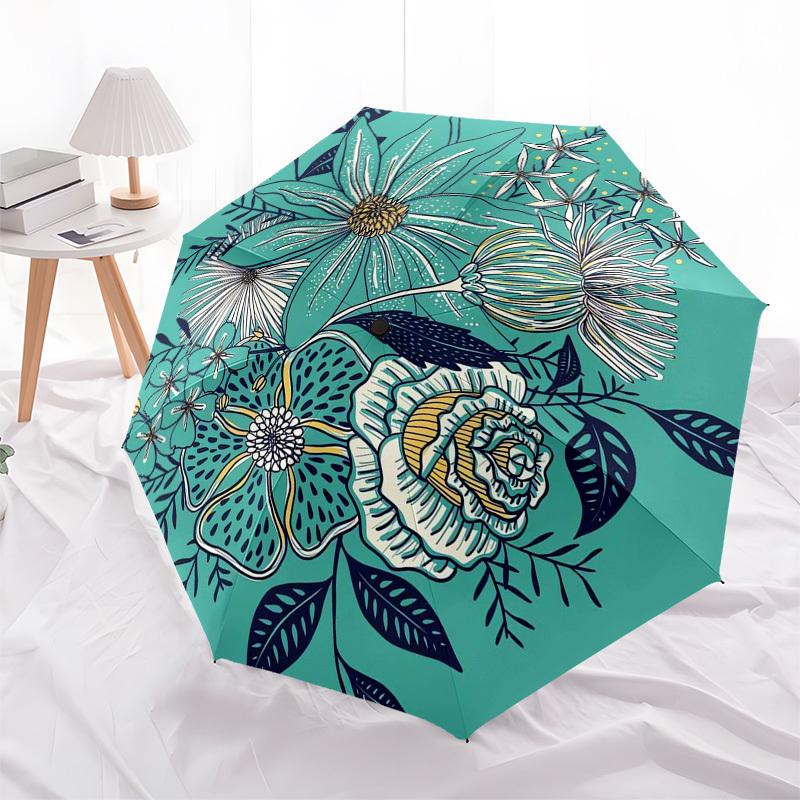 1pc Floral Illustration with Teal Background Umbrella with Plastic Handle,Suitable for All Seasons Umbrellaptys26088