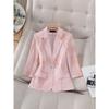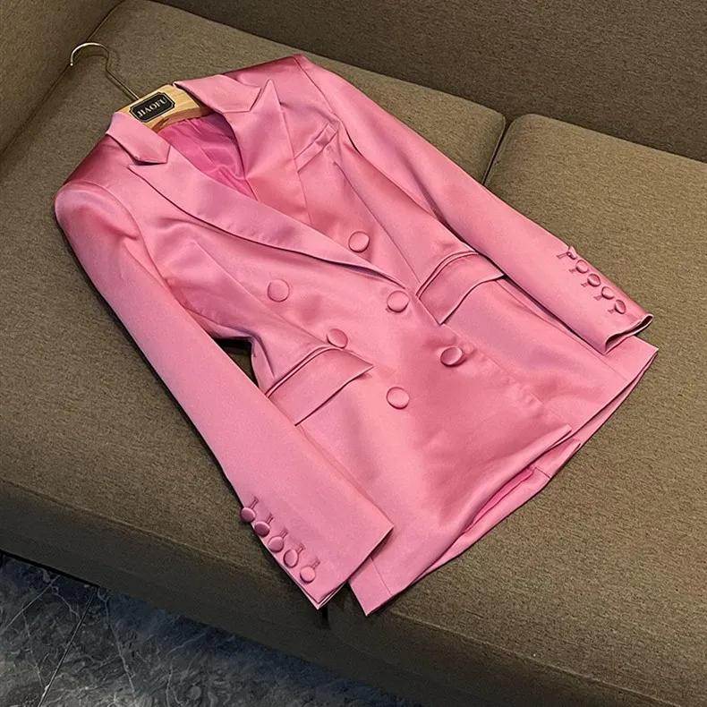 Women Spring and Autumn Pink Satin Slim Fit Blazer Hip-covering Skirt Commuting Two-piece Set