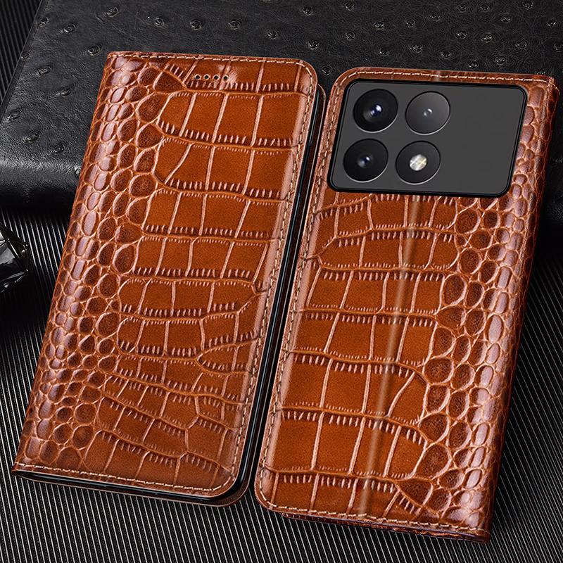 Crocodile Genuine Leather Flip Case for Redmi K90 K80 K70 K70E K60 K60E K50 K40 K30 K20 Pro Max Ultra Card Slots Wallet Cover
