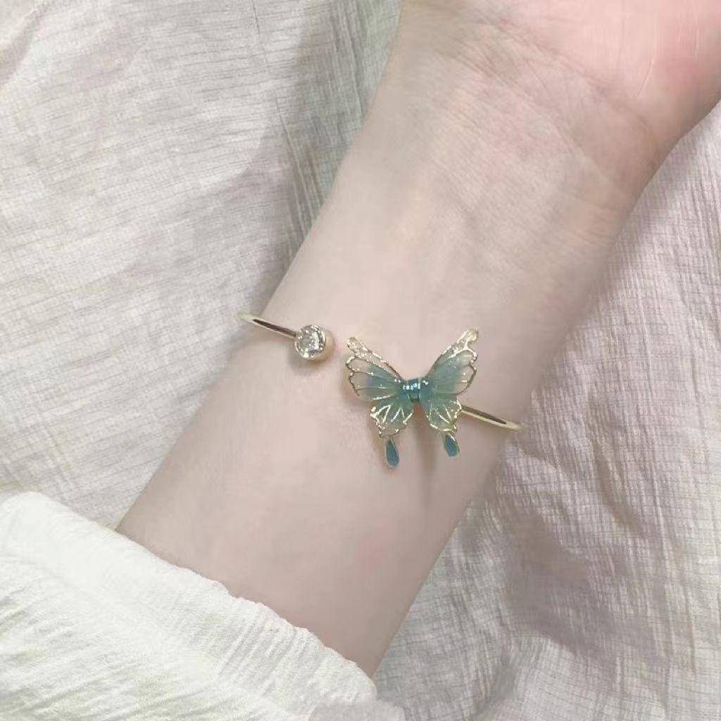 Green butterfly bracelet niche design sense Chinese temperament jewelry female girlfriend jewelry new