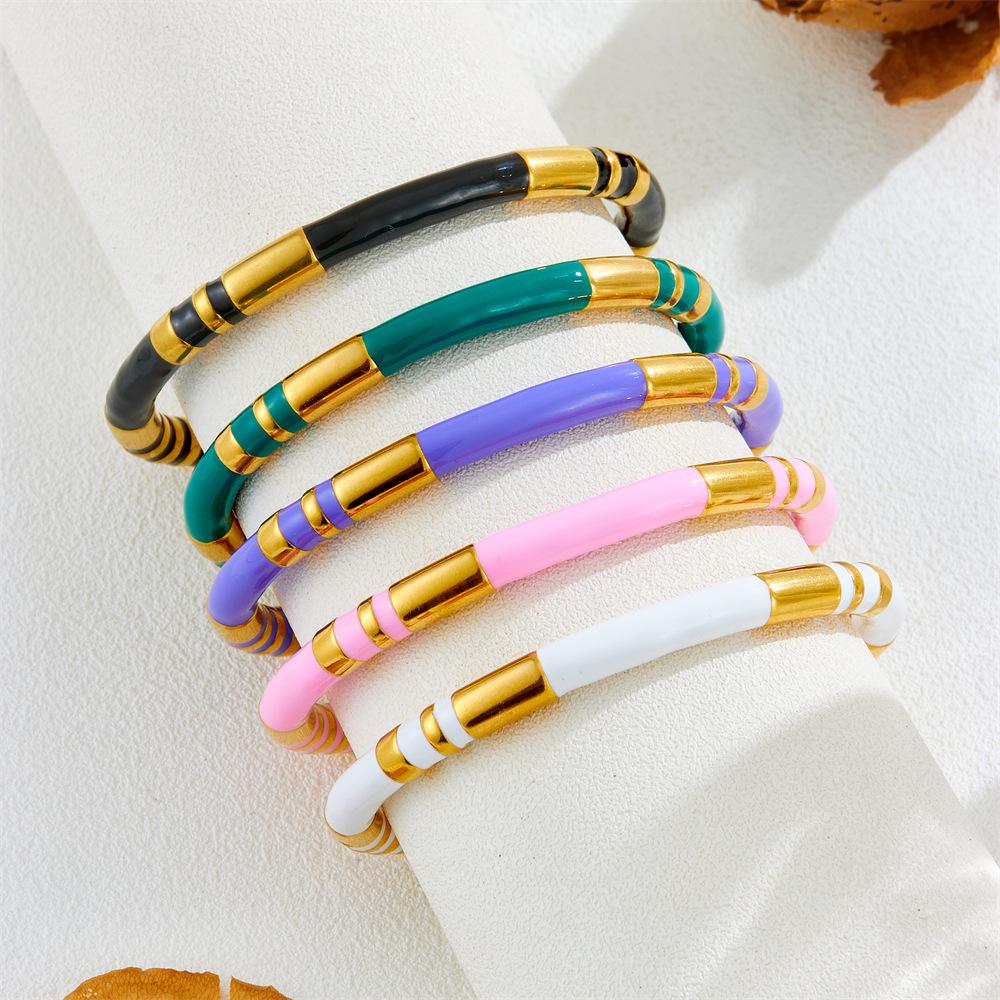 2026 Bamboo Drop Oil C-shaped Bracelet Women's Design Sense Advanced Sense Fashion Versatile Ins Style European and American Niche
