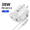 Tatal 38W Wall Charger Quick Charge PD20W Power3.0 Fast Charging Adapter with USB Type C Cable for for Xiaomi iPhone Samsung