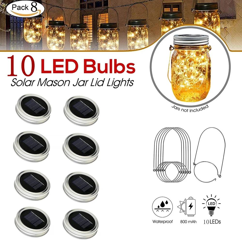 Solar Mason Jar Lights with 8 Handles 10 Led String Lights Fairy Solar Lights Lids Jar Decoration Garden Party Christmas Decor