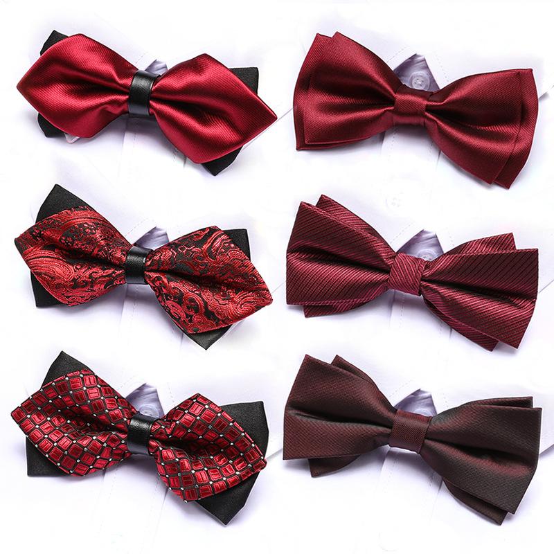 Men'S Bow Tie Best Man Groom Burgundy Solid Color Double Triangle Shirt Wedding Wedding British Korean Edition Bow Women