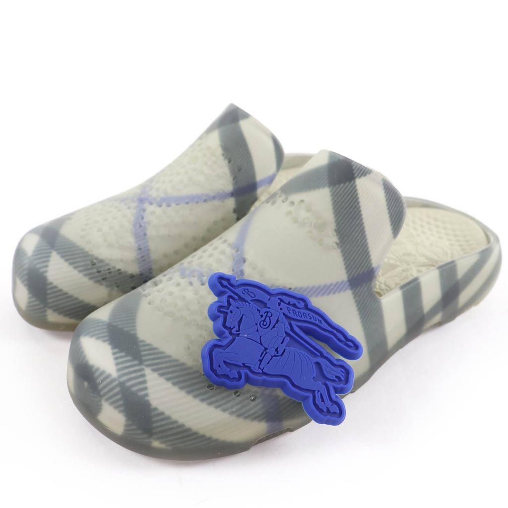 Pristine BURBERRY Sandals Check Pattern Flat Rubber with Logo Charm gray 35 Used