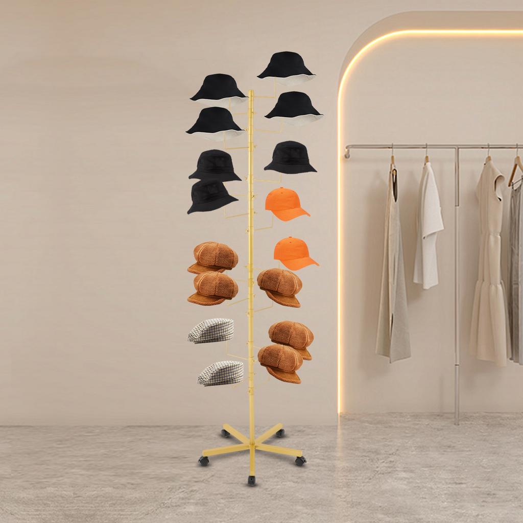 Gold 16-Hook Free Standing Hat Rack, 30lbs Capacity Display Stand for Closet, Modern Entryway & Boutique, Space-Saving Organizer