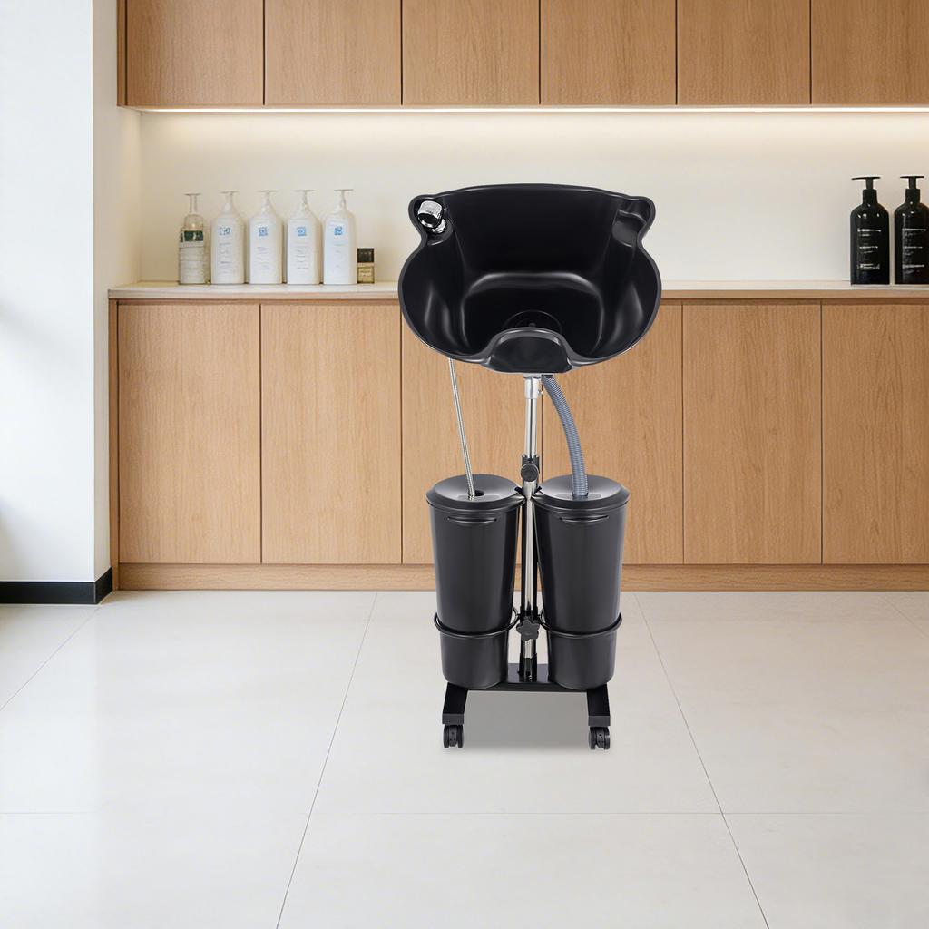 Bymaocar Dual Bucket Large-sized Vertical Non Bending Hair Wash Basin Adjustable Height and Angle with Wheels for Salon Stylists