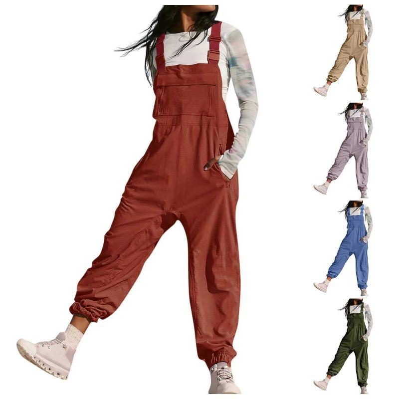 Fashion Cargo Overalls Women Y2k Harem Pants Sleeveless Square Neck Spaghetti Strap Legging Jumpsuits Pockets Streetwear