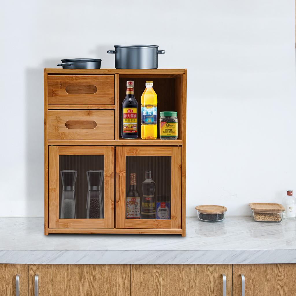 2-Drawer Storage Cabinet, Bamboo Organizer for Kitchen Pantry, Modern Kitchen Shelf, Compact Cabinet for Home Organization
