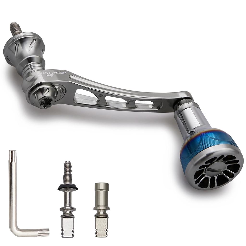 [Features] 55-60mm adjustable shaft distance reel handle, new center nut design, DIY skirt (sold separately), and socket height adjustment. Equipped with a new V2.0-24.5mm diameter handle knob, its rounded design and smooth chamfering provide a better grip than the previous model and less finger pain. [Size] Adjustable shaft distance reel handle, 24.5mm diameter handle knob. [Weight] 26g (for Daiwa) / 31g (for Shimano). [Material] 70 series aviation aluminum. [Reel Handle Included] One Shimano socket, one Daiwa socket, one Shimano genuine handle knob bushing, one wrench, and five fashers. [Compatible Models] Compatible with Shimano and Daiwa spinning reel handles. [Note] The 55-60mm adjustable handle "Skirt & Socket (Shimano & Daiwa)" is a "lightweight design" and is recommended for "general-purpose" 2000-3000 reels. If you want to use it for power, you will need to "replace" it with our "Strength Skirt & Socket (Shimano & Daiwa)" (sold separately). Warranty: 60 days (excluding accessories)