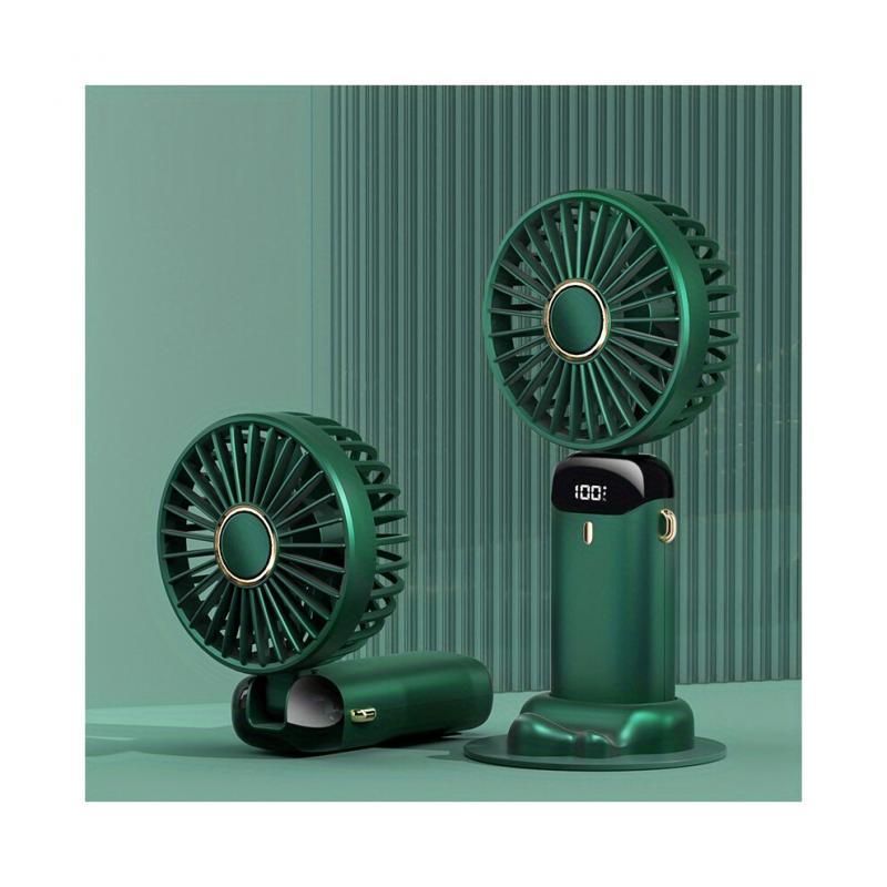 (Green) 1pc Rechargeable Handheld Mini Fan with 5 Speeds and LED Display