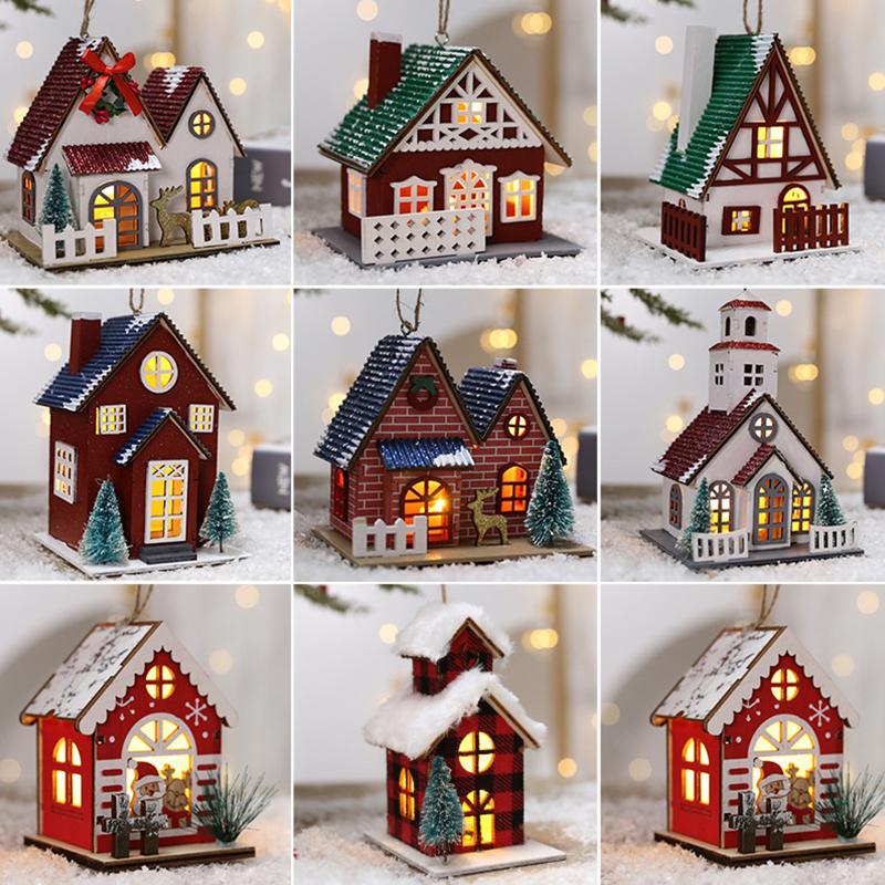 Led Ahşap Noel Evi Mini Noel Kar Evleri Ahşap Kış Köyü Bina Figürinleri Masa Süsleri Tatil Partisi Dekoru