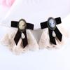 Vintage Handmade Pearl Velvet Ribbon Bowknot Chest Flower Pin Jewelry Queen Cameo Beauty Head Venetian Pearl Brooch