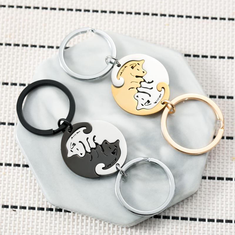 Titanium Steel Hug Dog Stainless Steel Keychain Cute Pet Design Fashion Couple Pendant Practical Valentine's Day Gift