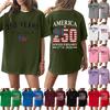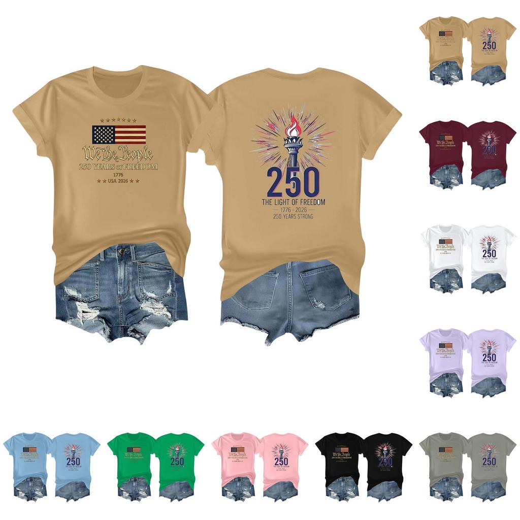 Women's Casual Independence Day 250 Anniversary Printed T-shirt Round Neck Pullover Short Sleeve Top