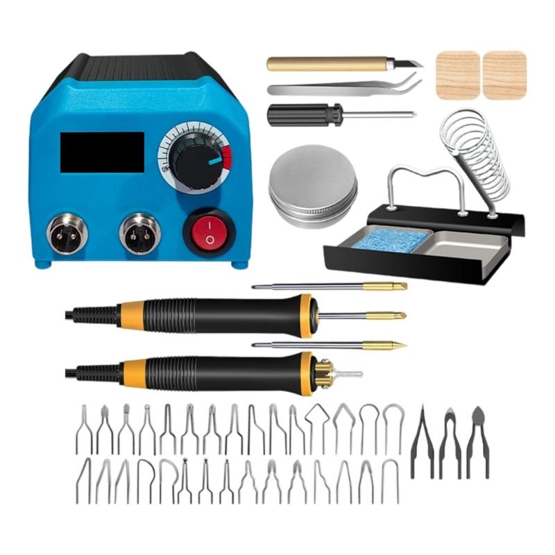 Digital Temperature Control Wood Burning Tool Set 110V With 2 Pen 36 Tips For Wood Leather Canvas Craft