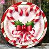 Vintage Christmas Candy Cane Wreath Metal Wall Sign 20x20 cm Retro Holiday Home Decor Xmas