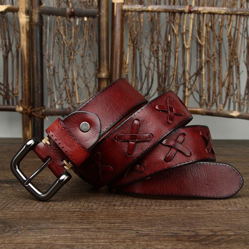 New Retro Fashion Personality Trend Versatile Woven First Layer Cowhide Pin Buckle Belt Men'S Genuine Leather Jeans Belt