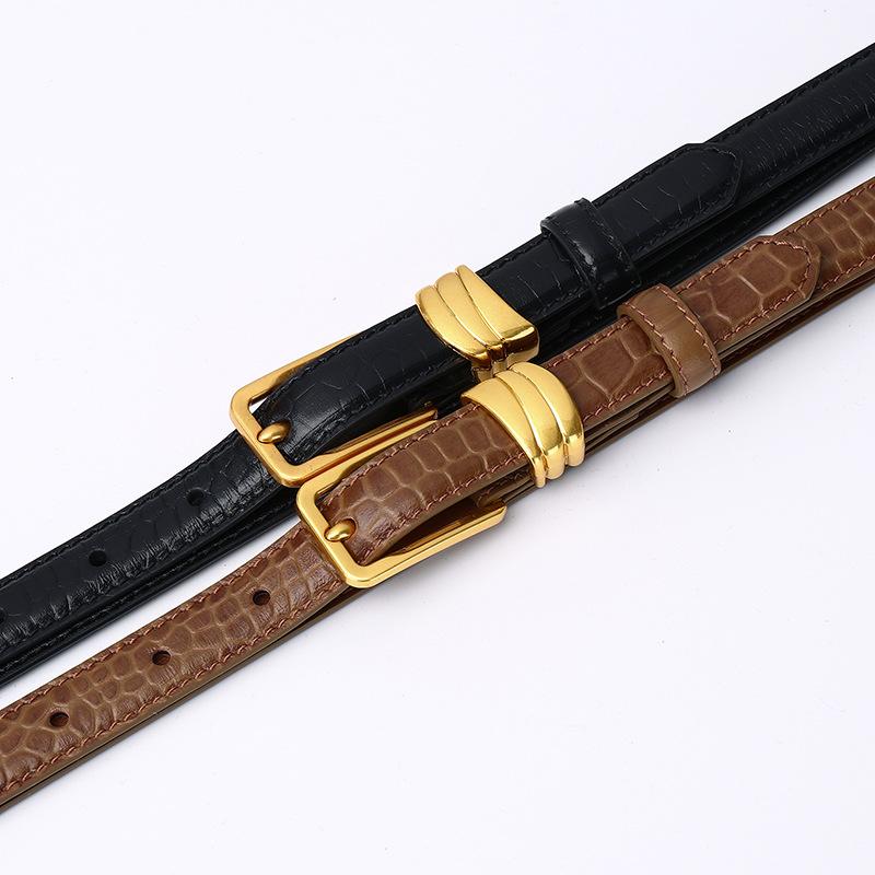 Fashion Trend Crocodile Pattern Belt Women'S Leather Pin Buckle Korean Version Small Suit Decoration Casual Jeans Thin Belt Women