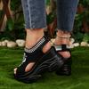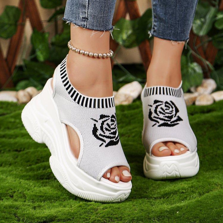 Kadınlar İçin Büyük Boy Platform Tabanlı Takunya Sandaletler, Örgü File Nefes Alabilen Balık Ağzı Esnek Tabanlı Hafif ve Rahat Sandaletler