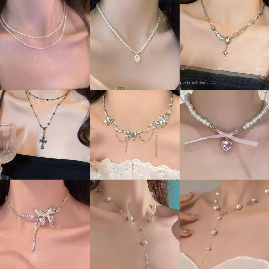 Small fresh asymmetric butterfly pearl necklace female sweet cool light luxury opal beaded collarbone chain girlfriend jewelry