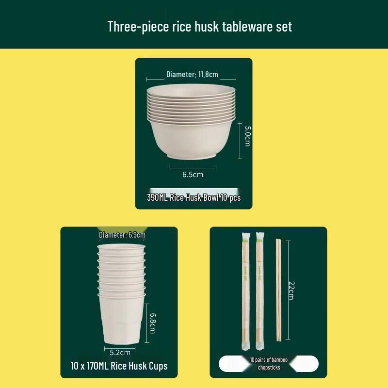 Qianyu Disposable Rice Husk Bowl & Chopsticks Set