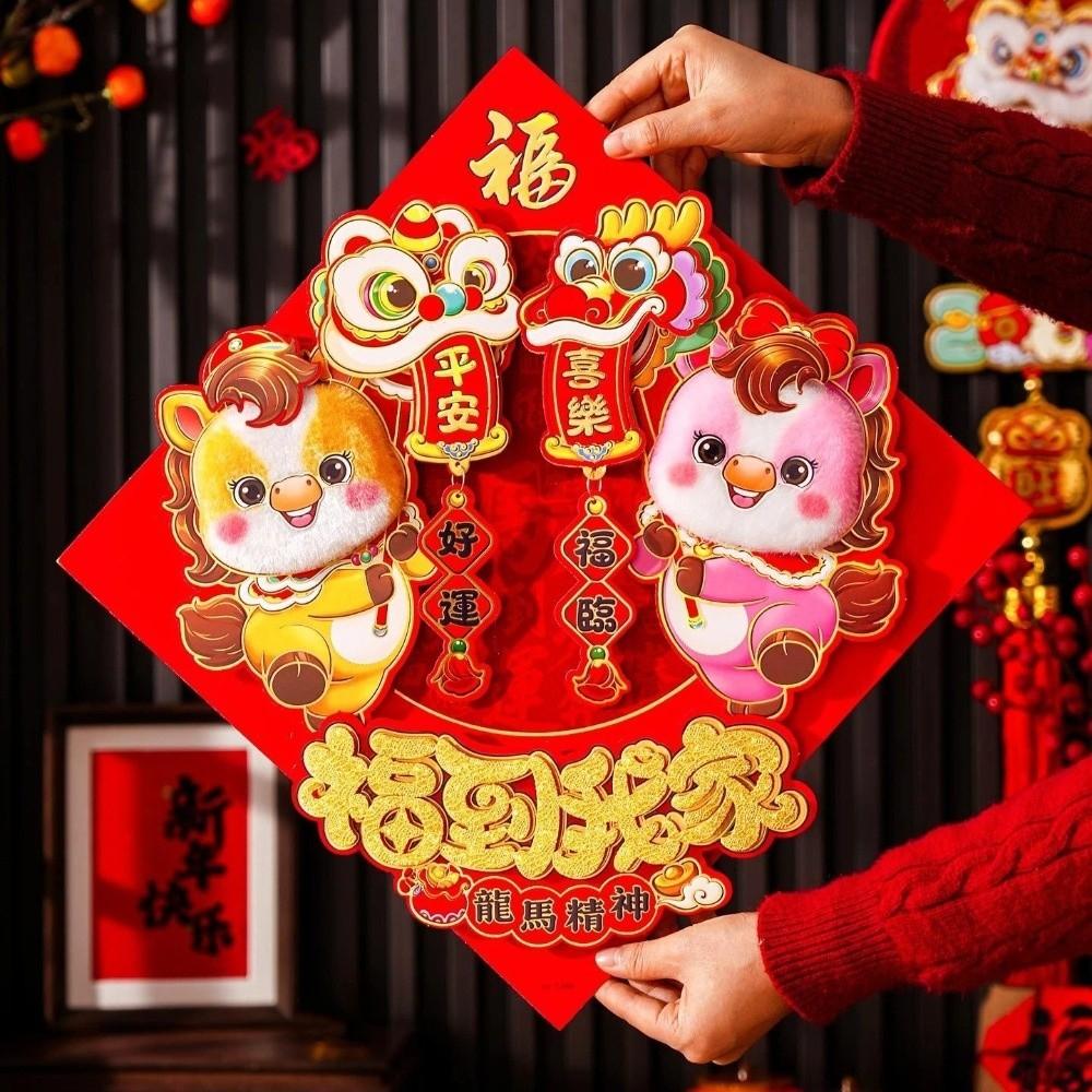Self-adhesive 3D Fu Character Stickers Cartoon Plush Window Sticker Spring Festival