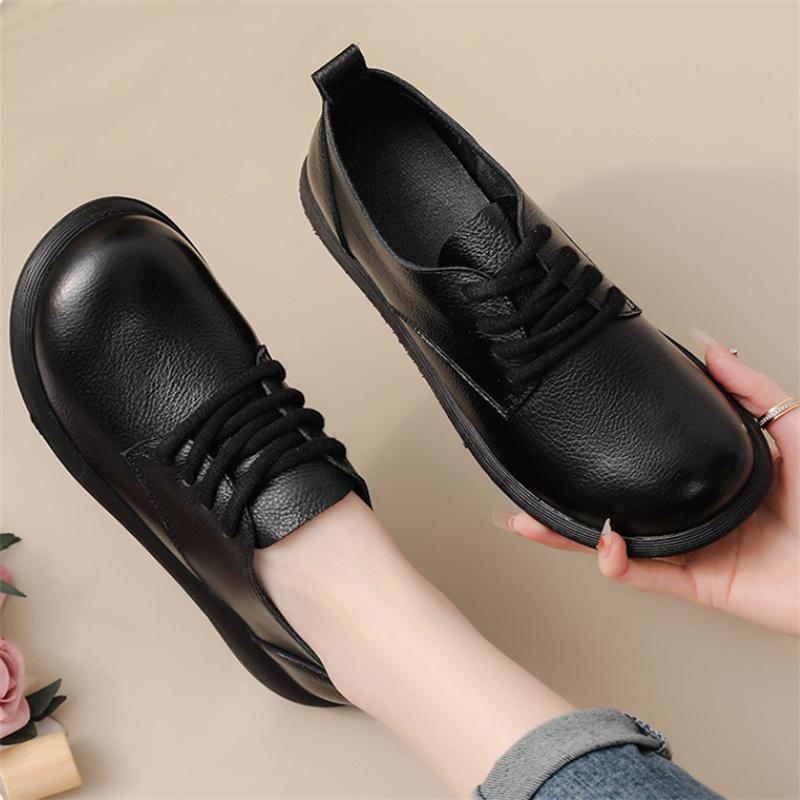Retro Oxford Sneaker Woman Cow Leather Shoes For Women 2026 Vintage Lace Up Mom Genuine Leather Sport Shoes Soft Flat Moccasins