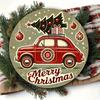 Vintage Christmas Car Tree Round Metal Sign 87x87 inch Festive Red Car Gift Merry Christmas Script Home Office Holiday Decoration