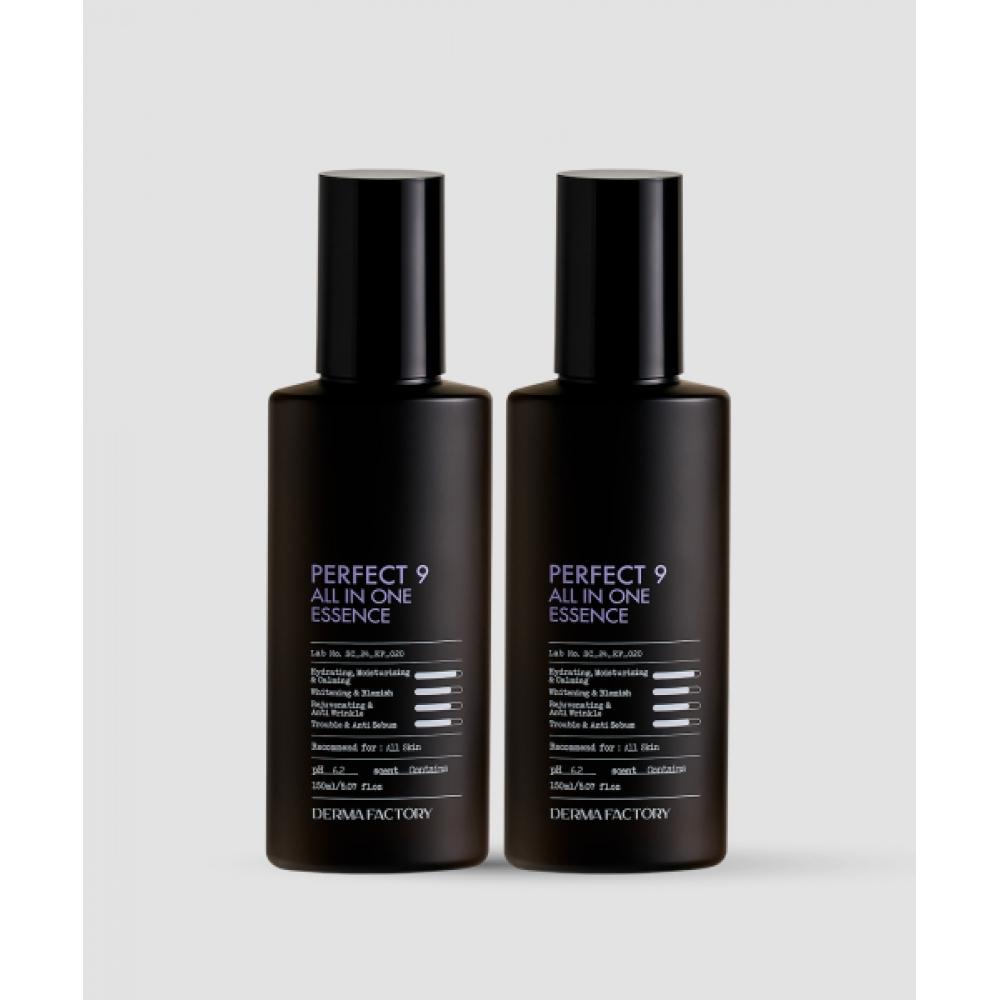 DERMAFACTORY Perfect 9 All-in-One Essence 150ml is a multifunctional skincare product that provides hydration, nourishment, and anti-aging care all at once. Formulated with nine powerful ingredients, including peptides, niacinamide, and Centella Asiatica extract, it helps improve skin elasticity, brighten skin tone, and strengthen the skin barrier. Its primary benefits include deeply hydrating and nourishing the skin, enhancing elasticity to reduce fine lines, and creating an even skin tone that gives a healthy glow. Suitable for all skin types, especially dry, mature, and dull skin. It contains up to 95.2% beauty ingredients for sebum secretion suppression and trouble soothing effects while being rich in moisture with a light finish.