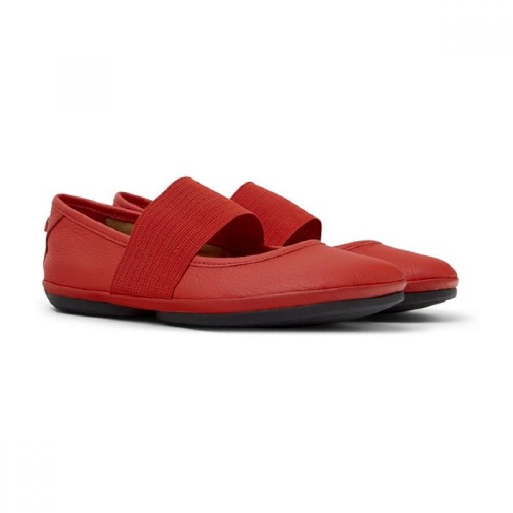 Camper's Right Nina is a women's red ballerina made from calf leather, featuring a removable EVA footbed and a recycled 20% rubber outsole. Initially launched in 2005, Right Nina combines the flexibility of ballet shoes with the protective qualities of street rubber outsoles, providing a flexible and lightweight design for comfortable wear in daily life.