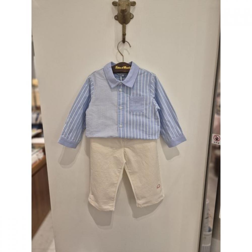 The Denver Color-block Shirt Set (TTOMXT062) is a casual outfit set for infants. It features a comfortable fit and a stylish color-block design, making it a convenient choice for everyday wear. This item is functionally suitable for various activities.