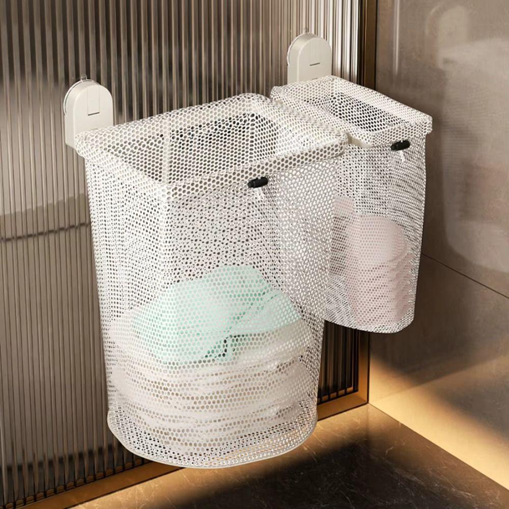 Breathable Design Hanging Laundry Basket Suction Cup Mounting Laundry Sorter Wall Mounted