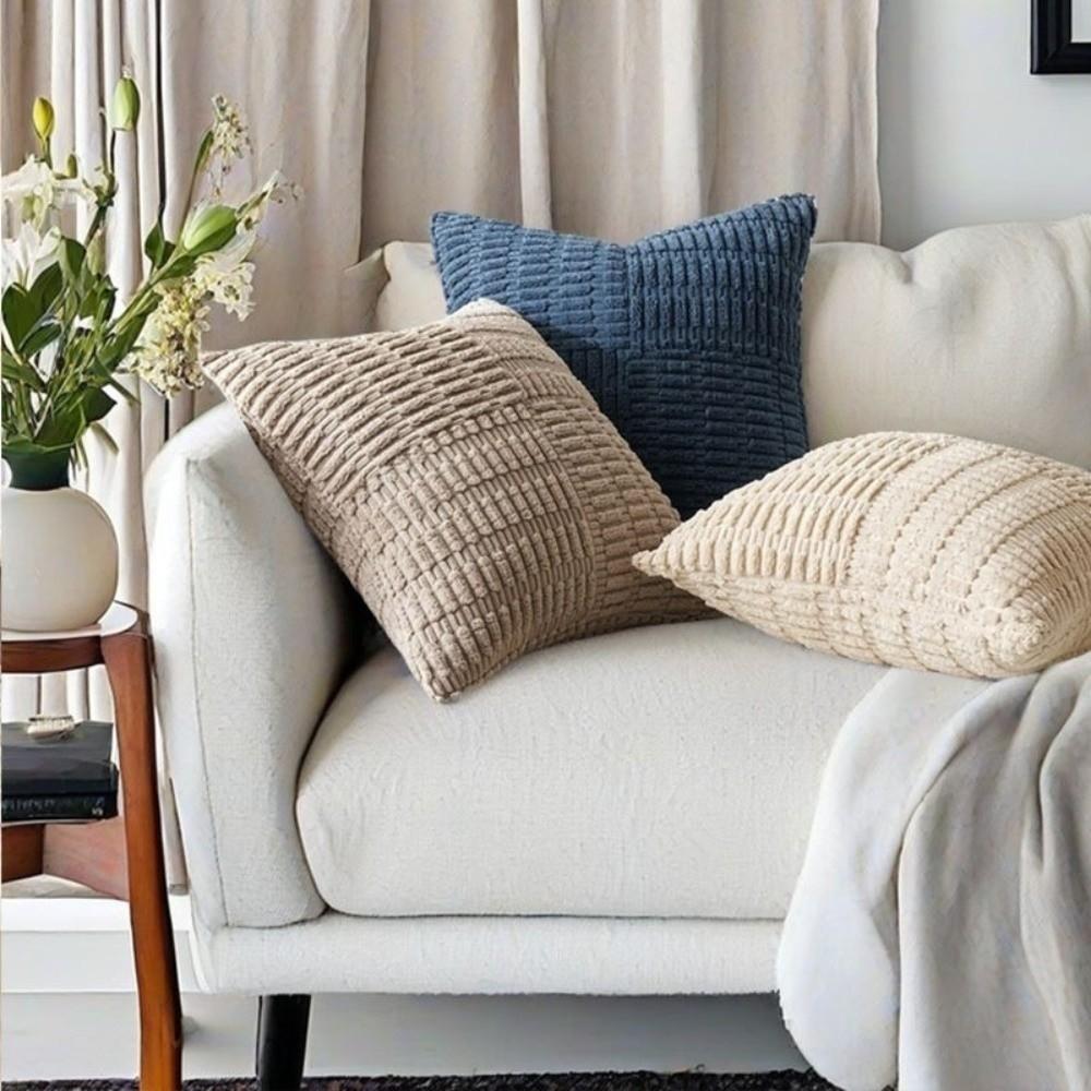 Solid Color Corduroy Pillow Cover Textured Plush Pillowcase Modern Pillowslip Living Room