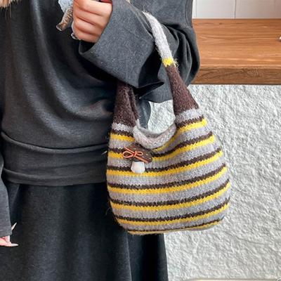 Japanese Style Knitted Wrist Bag Color-Block Wool Bucket Bag Cute Little Mushroom Handbag Travel