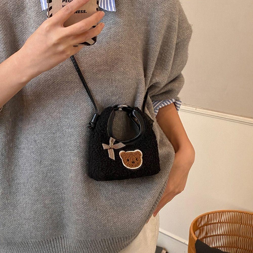 Cute Plush Crossbody Bag Cartoon Mini Shoulder Bag Creative Bear Bow Handbag Kids
