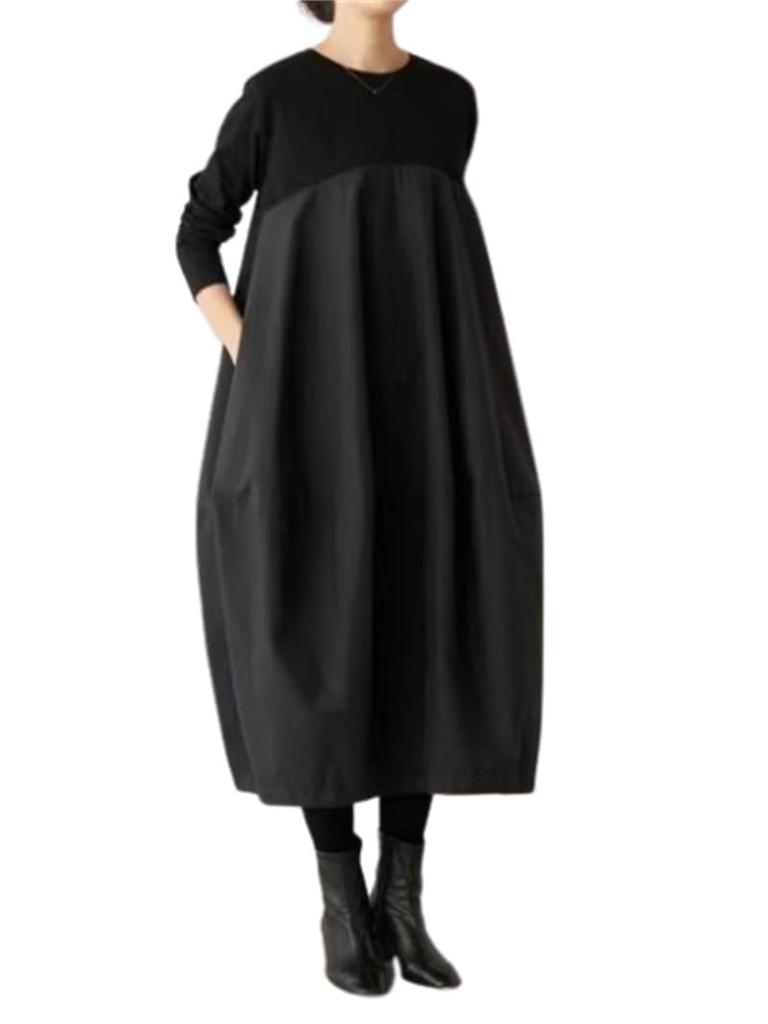 Spring Long Sleeve Long Cocoon Switching Resort Casual Maxi Plus Sizes Popular Free [kisetsumate] Women's Dress, Fall/Winter Dress, Pattern, Dress,