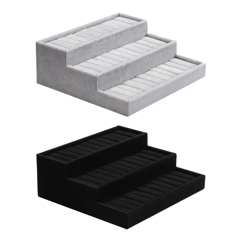 Layer Trapezoid Velvets Jewelry Storage Case Sturdy Construction Dustproof Designs For Earrings Bracelets