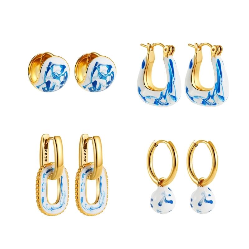 User Friendly Ceramic Ear Clip Blue Floral Pattern Dangle Earring Sturdy Copper Material Office And Casual Accessory