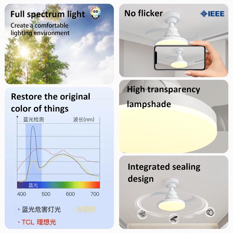 LED Ceiling Fan Light Retractable Blades Fans with Lights Remote Control APP E27 Socket Dimmable Timing 4 Speed Kitchen Bedroom