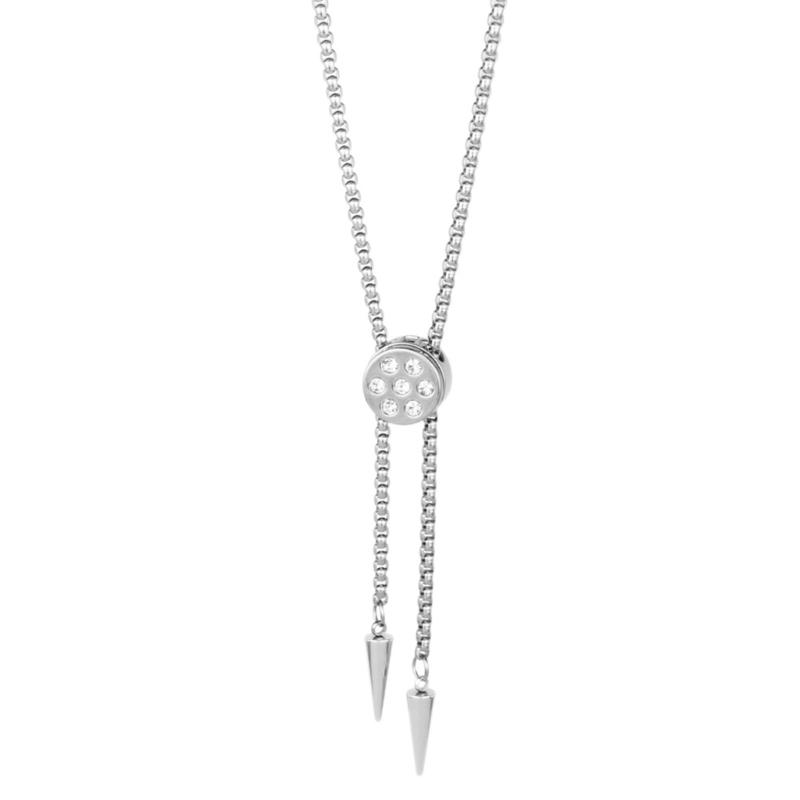Elegant Round Shaped Neckwear Rhinestones Accented Unisex Stainless Steel Necklace Slidable for Gifting and Daily Use